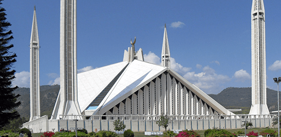 Arsitektur masjid kontemporer sering mewakili perpaduan gaya yang luar biasa, menggambar dari tradisi arsitektur yang beragam untuk menciptakan sesuatu yang dikenal “Islami,” yang memenuhi semua persyaratan arsitektur masjid komunal dan bergaya kontemporer. Di Pakistan, Masjid Raja Faisal, 1986 memadukan arsitektur kontemporer dengan referensi visual ke bentuk-bentuk tradisional.